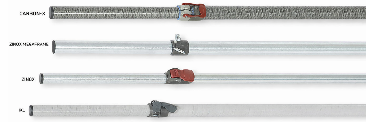 Zinox stålrørsstel kan anvendes til både rejse- og fastliggercamping. Stålstellet er et billigere alternativ og en udmærket erstatning til CarbonX og MegaFrame. Til rejsecamping er Zinox et noget tungere stel at have med, men stadig let at håndtere fordi det har T-Rex låsebeslag, som udspænder stængerne med ét enkelt tryk på håndtaget. Zinox stålstellet er også brugbart til fastligger- og sæsoncamping. Stellet består af samme materiale som MegaFrame, men er smallere i diameter og har hjørner og kryds i støbt plast. Zinox stålrørsstellet er specielt velegnet til camping i ydersæsonen, og derfor også det stel, du finder i vores Universal og vintertelte.